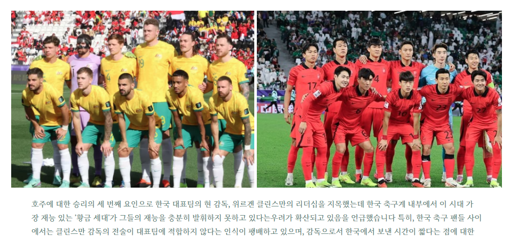 호주가 그룹 스테이지부터 16강까지 상대한 팀들은 우즈베키스탄을 제외하고는 비교적 약했기 때문에 그들의 매치업은 꽤 유리했지만, 이번 경기를 통해 한국이라는 강적과의 경쟁을 통해 실력을 정말로 시험해볼 수 있게 되었습니다.
